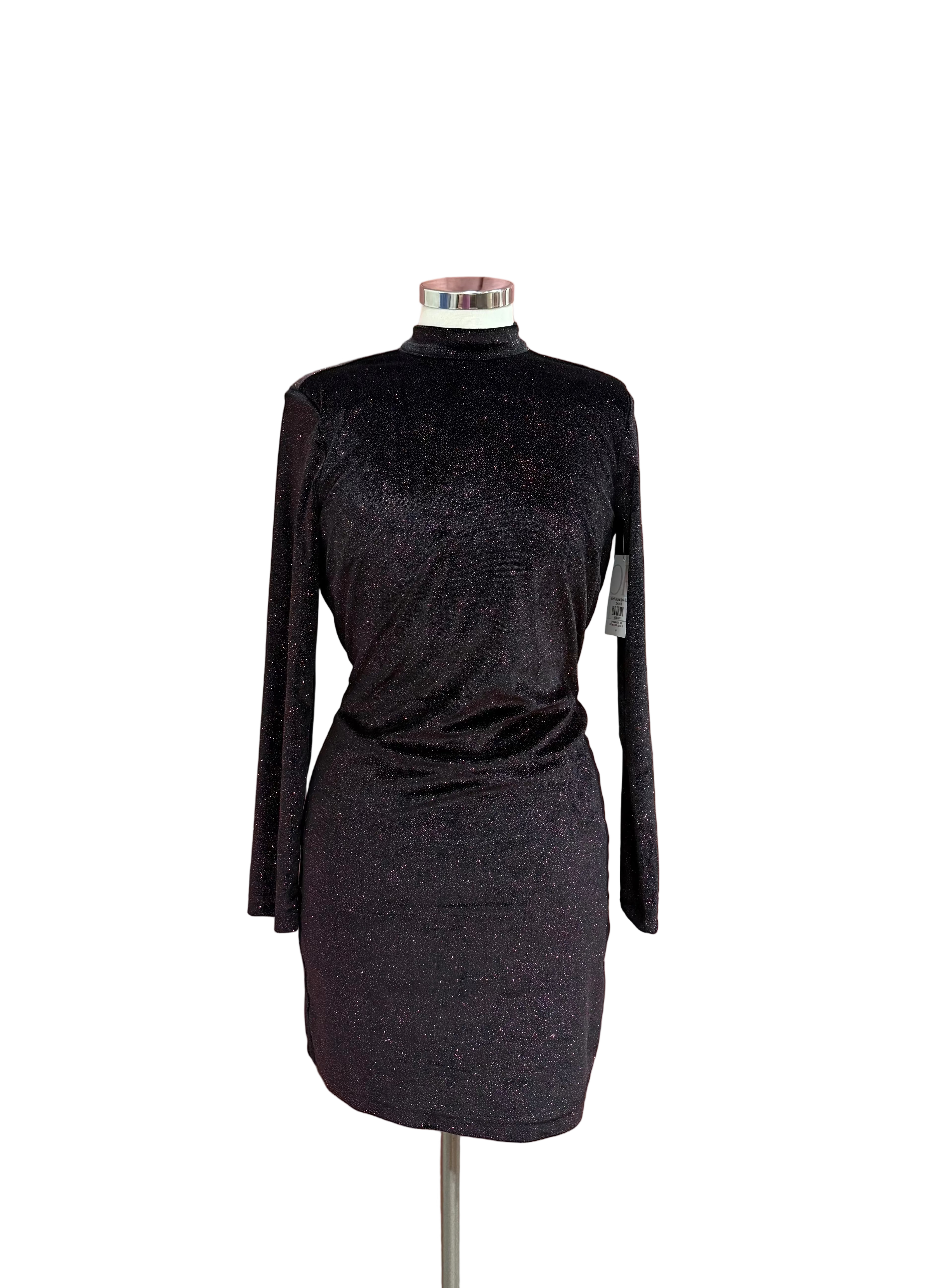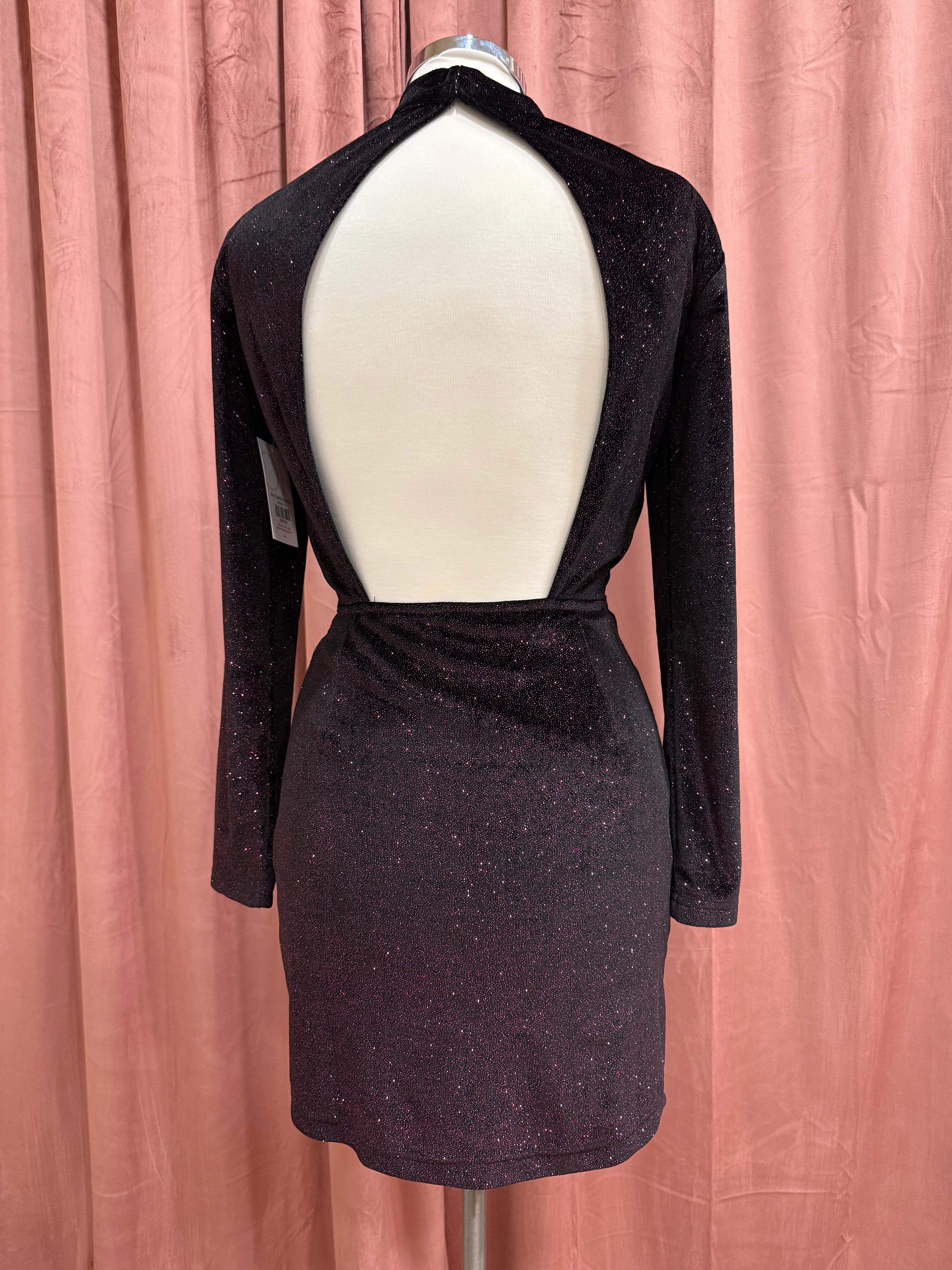 Black Velvet Fuschia Sparkle Open-Back Minidress